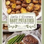Air fryer baby potatoes are seasoned with fresh rosemary, garlic powder, paprika, salt and pepper, for a simple side dish that pairs well with just about any meat or fish dinner. Simply rub them with oil, seasonings, and herbs and pop them in your air fryer. They'll come out roasted to perfection in barely 20 minutes!
