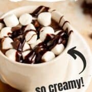 Serve with your favorite toppings, such as marshmallows, whipped cream, candy canes, chocolate shavings, and peppermint sticks. A drizzle of chocolate or caramel sauce on top is also fantastic and makes it extra sweet!