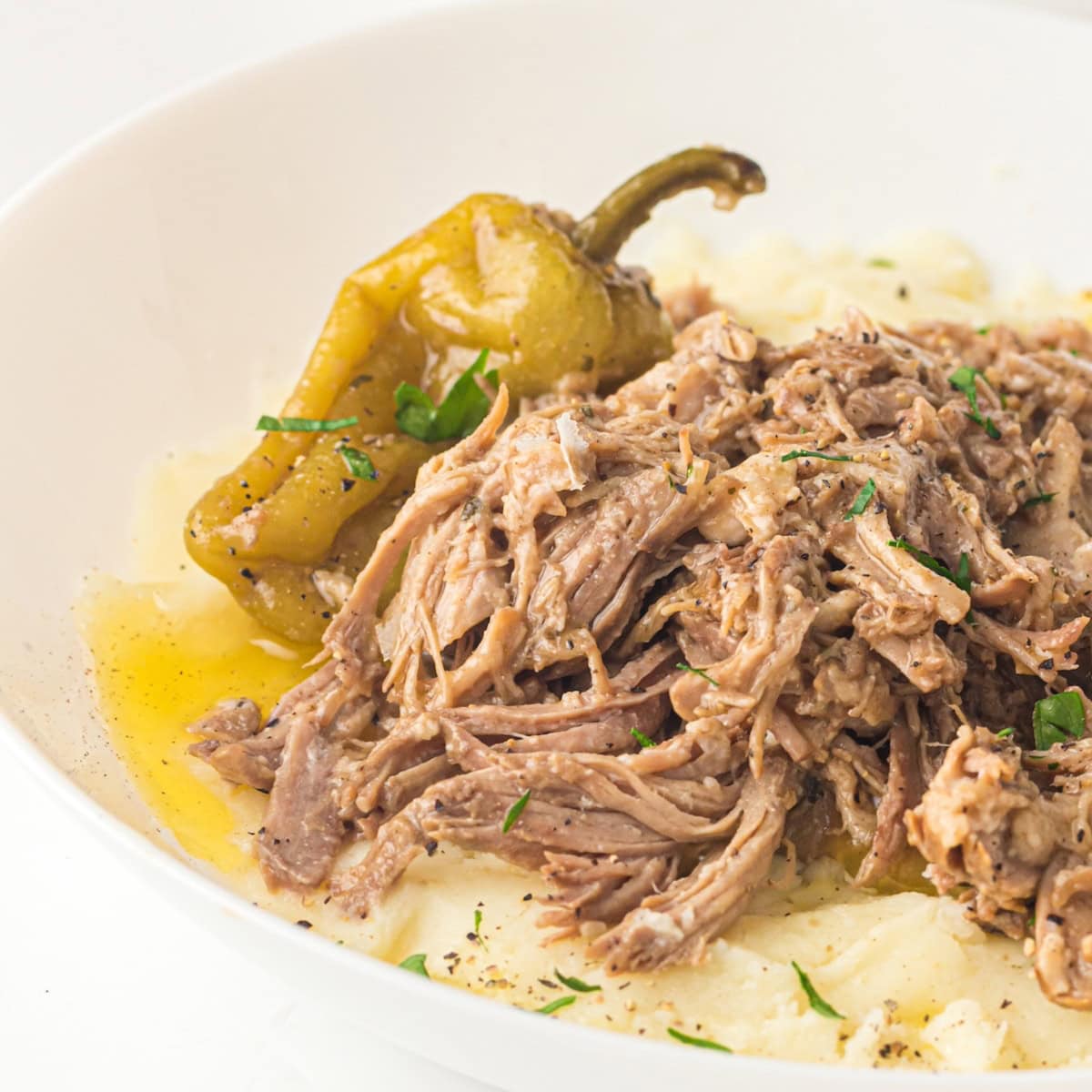 Slow Cooker Mississippi Pork Roast in the kind of comfort meal that cooks itself, filling your kitchen with rich and savory aromas all day long. Tender pork shoulder melts into a buttery blend of ranch seasoning, au jus and tangy pepperoncini - creating the perfect balance of sweet, savory and spicy.